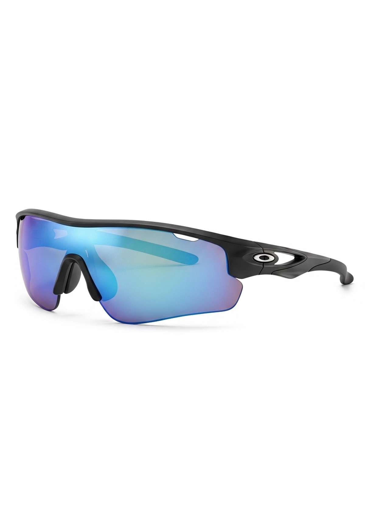 Com design envolvente (wraparound), ele oferece melhor cobertura lateral contra vento, poeira e luminosidade intensa. A lente única estilo shield com acabamento espelhado azul garante visual moderno e redução eficiente de reflexos.