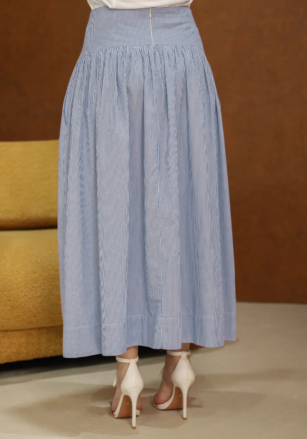 A saia foi desenvolvida com pala na cintura, proporcionando melhor ajuste ao corpo e leve sustentação na região do abdômen. O resultado é um visual mais harmonioso, confortável e seguro ao vestir.