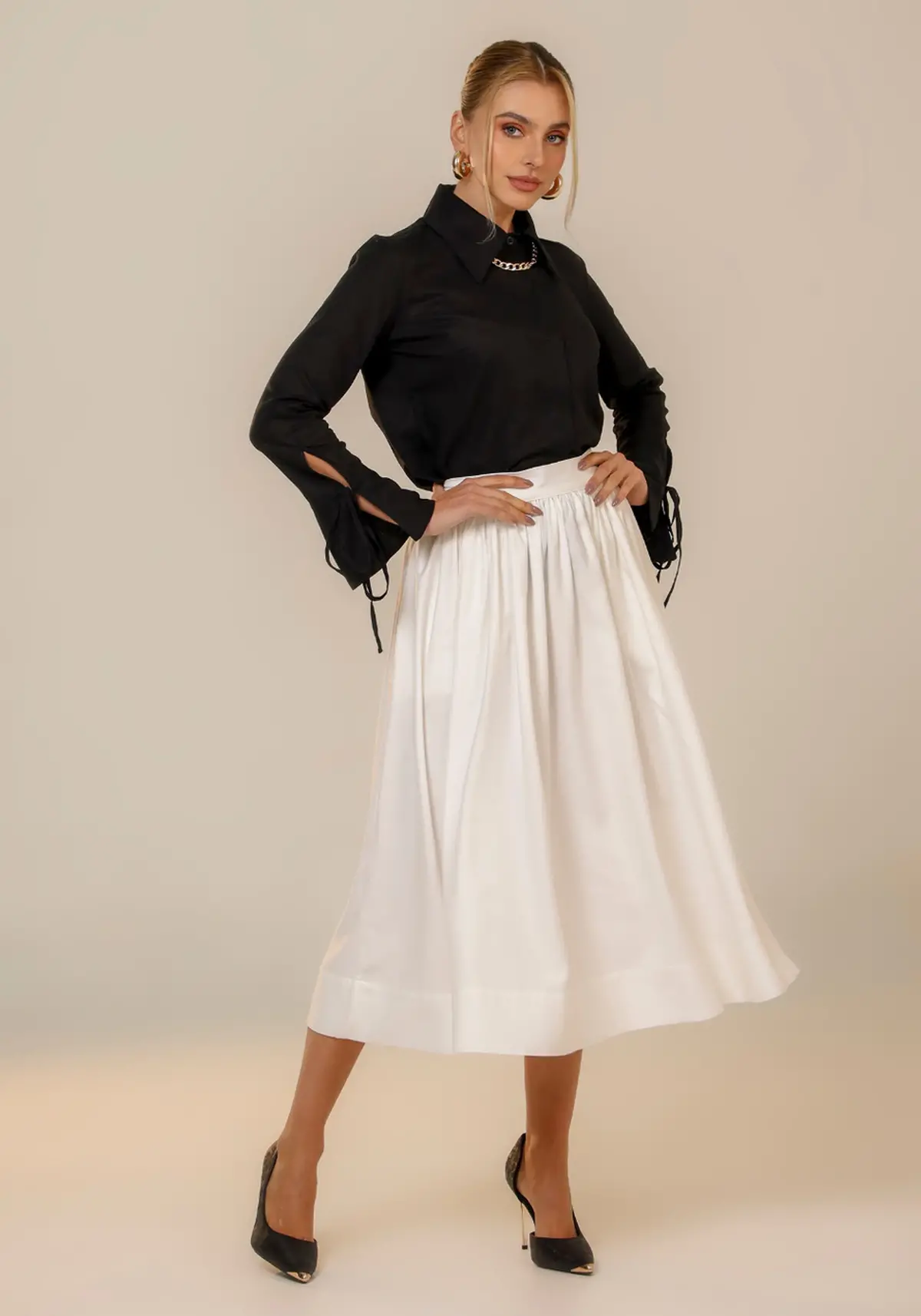 Versátil e elegante, a Camisa Prudentia é perfeita para compor produções de trabalho, reuniões, eventos ou ocasiões especiais. Combine com saias de alfaiataria, calças elegantes ou até mesmo jeans, criando desde looks sofisticados até propostas mais modernas e descontraídas.